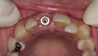 インプラントに芯を入れて更に仮の歯を入れて歯ぐきの治癒を待ちます.